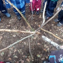 Das Spiel mit verschiedenen Stecken nimmt während des Spielgruppenmorgens einen grossen Raum ein. Oft suchen die Kinder schon auf dem Hinweg 'ihren' ganz speziellen Stecken, den sie während des Morgens benützen oder bei ihrem Rucksack deponieren, um ihn dann mit nach Hause zu nehmen.