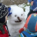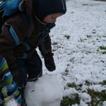 Wir haben ausgiebig mit dem Schnee gespielt, Schneeballschlachten gemacht und sogar ein Schneemann ist entstanden. Leider hat sich dieser dann 'hingelegt', bevor er noch mit Haaren und einer Kappe aus Waldmaterialien ausgestattet werden konnte.