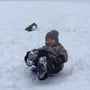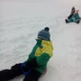 Hurra, immer noch Schnee! Schnell die Schlitten geschnappt und hinauf-hinunter-hinauf-hinunter...