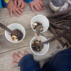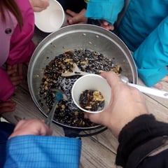 Da heute Jagd war, wichen wir mit der Spielgruppe zu Sabine nach Hause aus. Nebst Spielen im Sand, rutschen und Fussballspielen stellten wir gemeinsam Vogelfutter her.