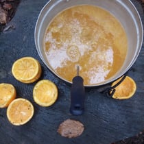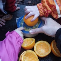 Da die Kinder unseren Punsch nicht so mögen, mussten wir diesen etwas "attraktiver" präsentieren. Mit ganzer Kraft und trotzdem vorsichtig, wurden die Orangen ausgepresst und der Saft zum Punsch gegeben. Das Highlight der Kinder: im Anschluss genüsslich die Orangenhälften aussaugen. Und der Punsch? Naja, immer noch nicht der Renner ;-)