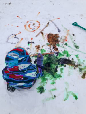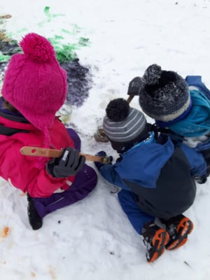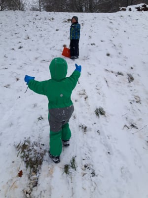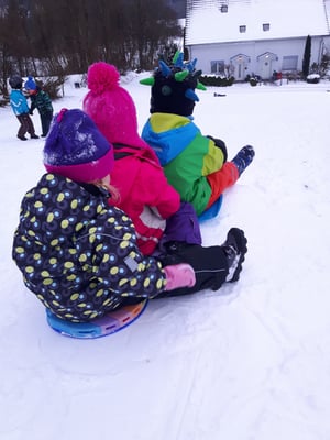 Im neuen Jahr geht es königlich weiter... Wir geniessen den Schnee in vollen Zügen, sausen den Schlittelhang herunter, rollen und rutschen, schaufeln und hacken oder malen ihn bunt an.