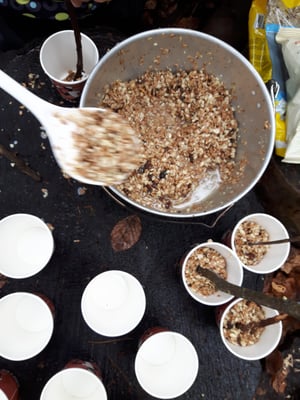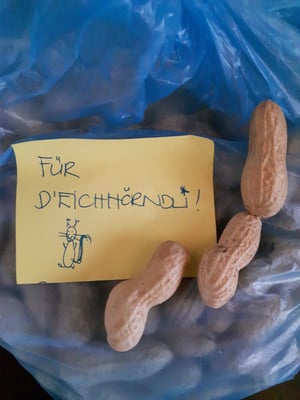 Dafür kochen wir vermehrt Suppen oder Nudeln, oder stellen Vogelfutter für die gefiederten Waldbewohner her. Die Eichörndli, oder je nach Schnelligkeit eher die Eichelhäher, profitieren von übriggebliebenen Samichlausnüssli. Herzlichen Dank für die Spenden!
