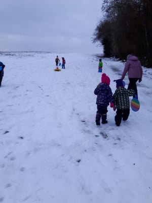 Samichlaus und Waldweihnacht bildeten die Spielgruppenhöhepunkte im Dezember und im neuen Jahr war er dann da; "s hät Schnee juhee und s git na meh!" (nach dem Lied von A.Bond)