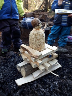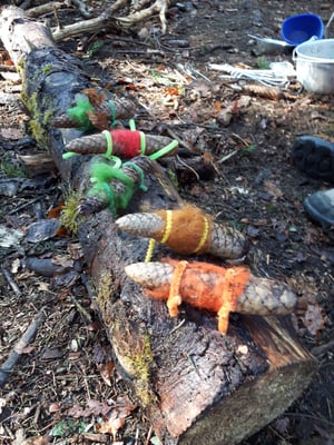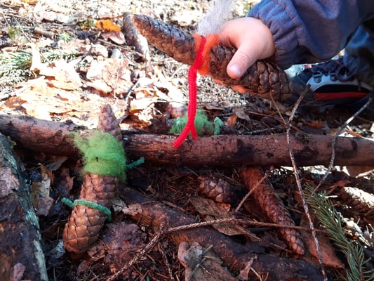 wir bastelten Dinosaurier-Drachen-Ritterpferde aus Tannzapfen...